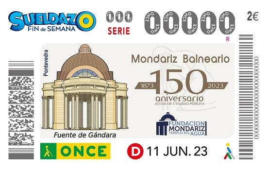 El 150 aniversario del nacimiento de la villa termal Mondariz-Balneario es el motivo del cupón de la ONCE del domingo, 11 de junio. Cinco millones y medio de cupones difundirán el siglo y medio de vida de esta histórica localidad pontevedresa.