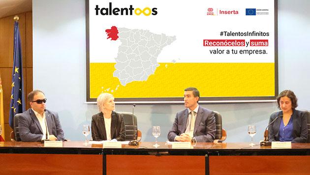 Inserta Empleo, la entidad de Fundación ONCE, para la formación y el empleo de las personas con discapacidad, presentó, el 16 de mayo, en Santiago de Compostela, el programa Talentos, una campaña cofinanciada por el Fondo Social Europeo en el marco del Programa Operativo de Inclusión Social y de la Economía Social (Poises), que nace con el objetivo de dar visibilidad al talento no descubierto de las personas con discapacidad para fomentar su contratación.
